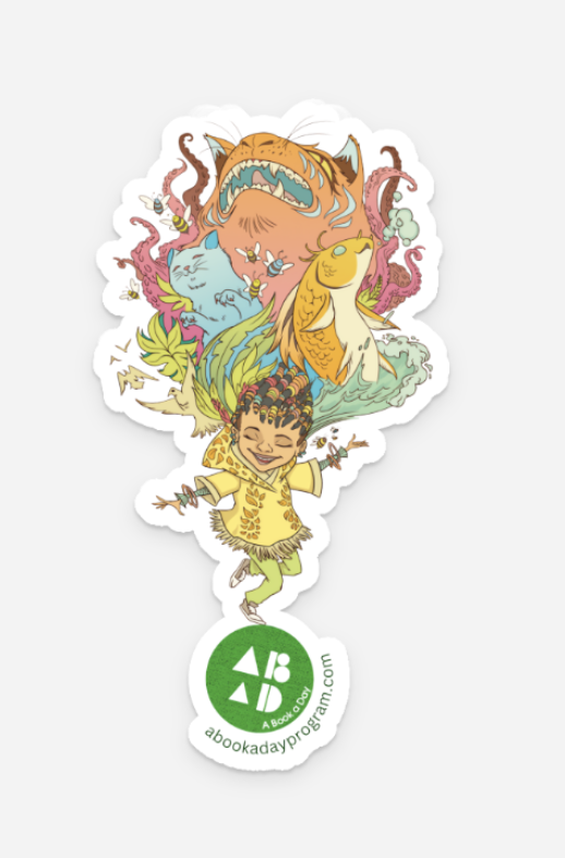 A Book a Day works with artists from around the world to create gorgeous, unique stickers honoring our various programs and partnerships. These stickers show A Book a Day’s growing impact in Philadelphia and highlight the diverse populations of children and families that we proudly serve.